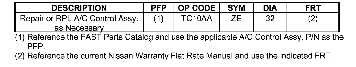 A/C - Manual Control Assembly Inoperative