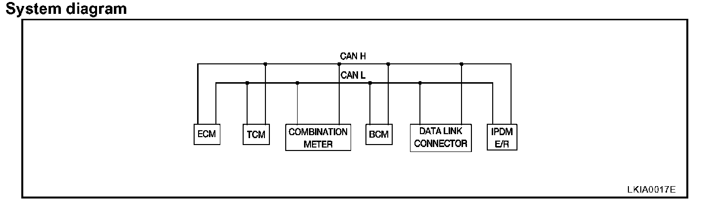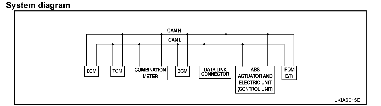 CAN Communication System DescriptionCAN (Controller Area Network) is a serial communication line for real time application. It is an on-vehicle multiplex communication line with high data communication speed and excellent error detection ability. Many electronic control units are equipped onto a vehicle, and each control unit shares information and links with other control units during operation (not independent). In CAN communication, control units are connected with 2 communication lines (CAN H line, CAN L line) allowing a high rate of information transmission with less wiring. Each control unit transmits/receives data but selectively reads required data only.