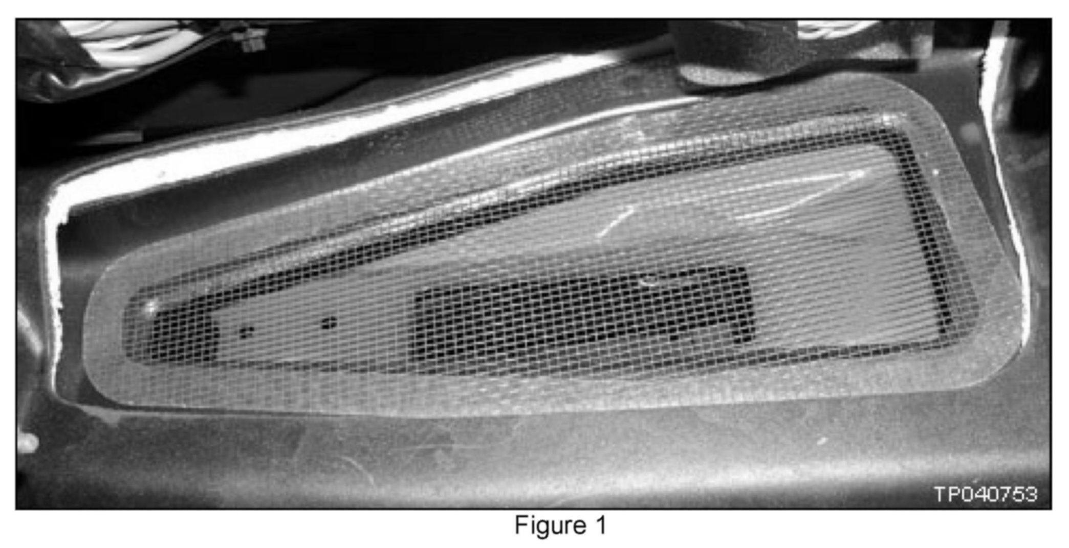 5. Remove the adhesive backing from the screen and install the screen on the inside of the fresh air intake opening of the cowl as shown in Figure 1.