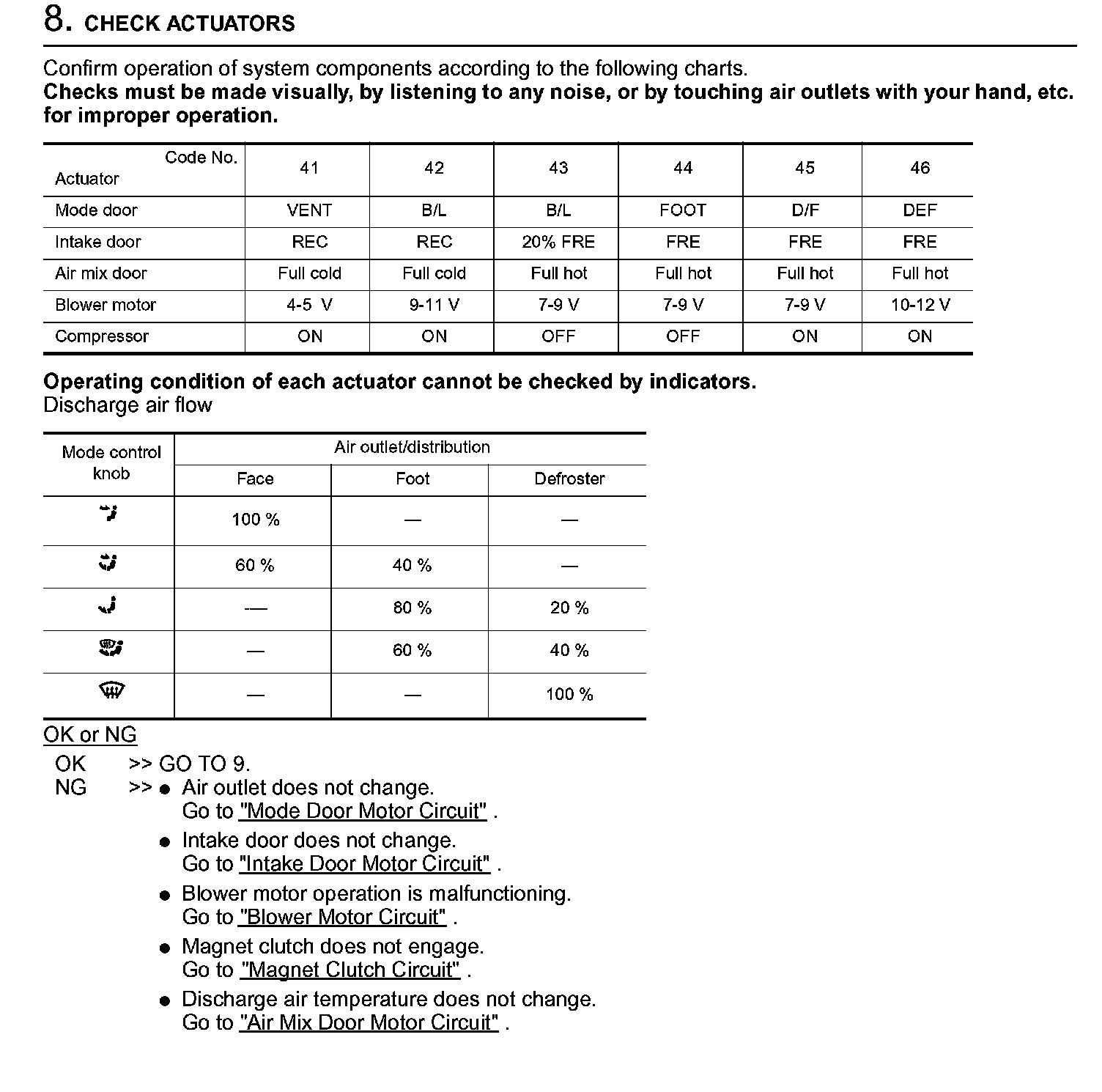 Perform all of the following tests to narrow the problem to a specific assembly, actuator, or function. Link to the Diagnostic Procedure which corresponds to malfunctions noted in these tests.