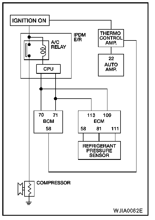Auto amplifier controls compressor operation by ambient temperature and signal from ECM.