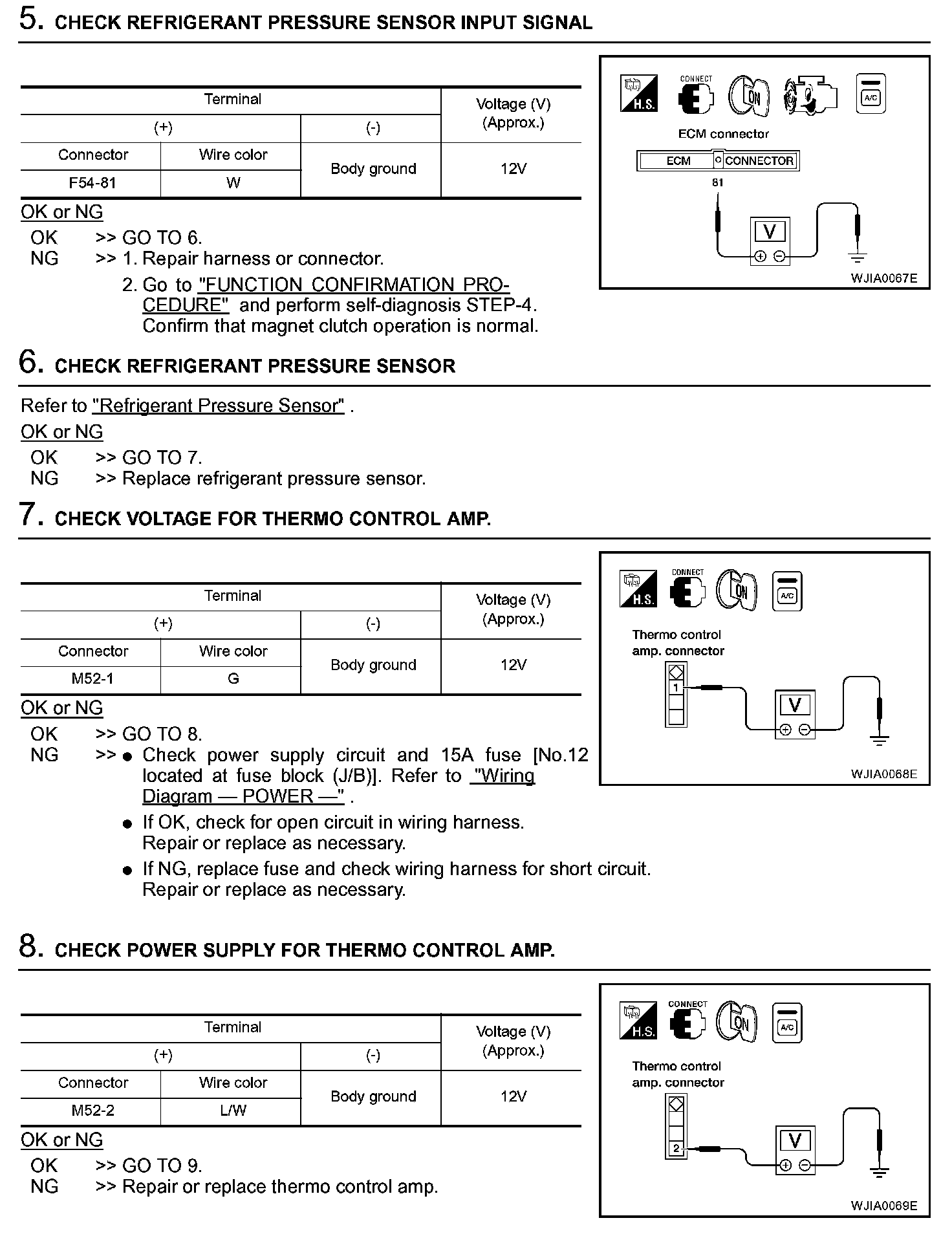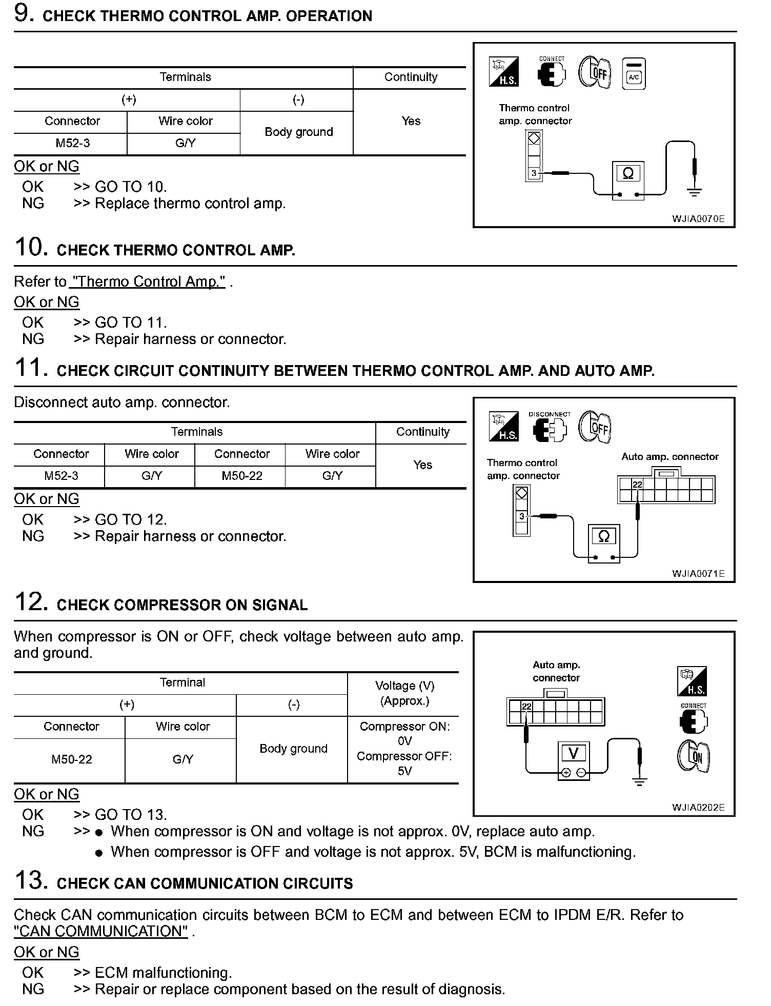 3. Check the thermo control amp. operation as shown in the table.