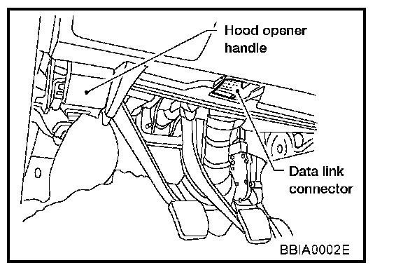 1. With the ignition switch OFF, connect CONSULT-II to the data link connector, and turn the ignition switch ON.