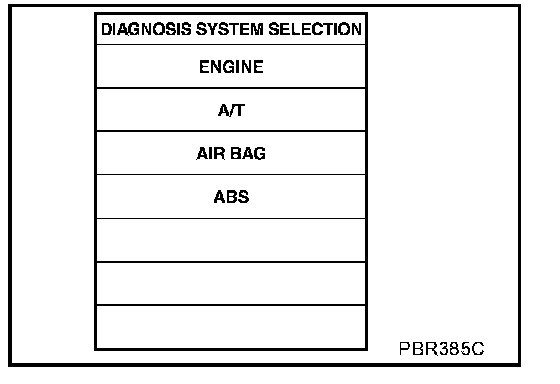 3. Select the desired part to be diagnosed on the "DIAGNOSIS SYSTEM SELECTION" screen.