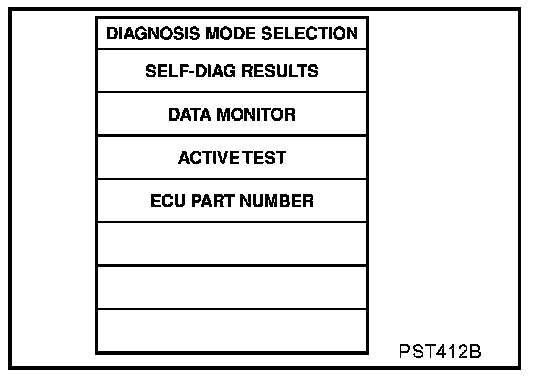 NOTE: "SELF-DIAG RESULTS" screen shows the detected malfunction and how many times the ignition switch has been turned since the malfunction.