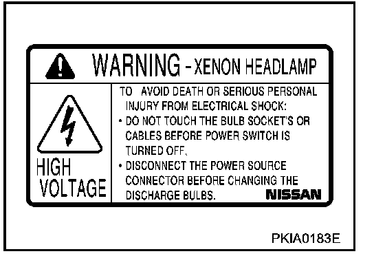 - Xenon headlamp includes high voltage generating part. Be sure to disconnect battery negative cable (negative terminal) or power fuse before removing, installing, or touching the xenon headlamp (including lamp bulb).