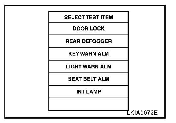 4. Select the desired part to be diagnosed on the "SELECT TEST ITEM" screen.