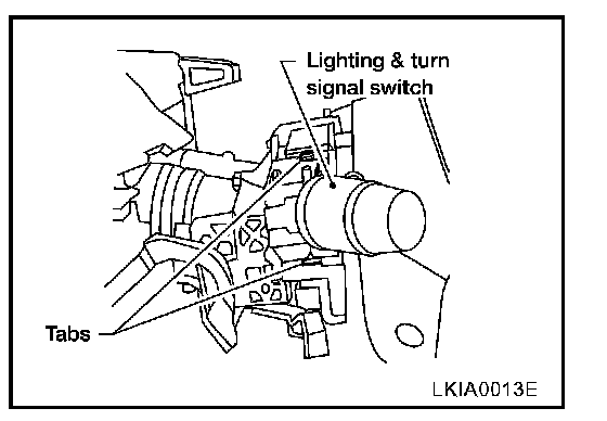 2. Pinch tabs and slide out lighting and turn signal switch (combination switch).
