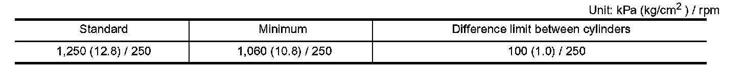 ^ If compression pressure is below minimum value, check valve clearances and parts associated with combustion chamber (valve, valve seat, piston, piston ring, cylinder bore, cylinder head, cylinder head gasket). After the checking, measure compression pressure again.