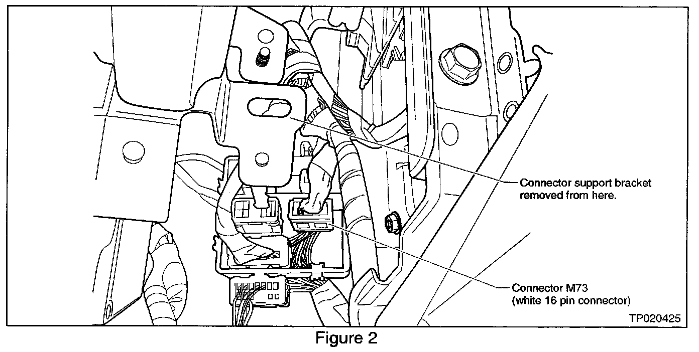 4. After removing the connector support shown in Figure 1, locate connector M73 (white 16 pin connector, see Figure 2).