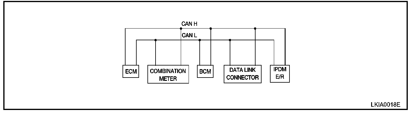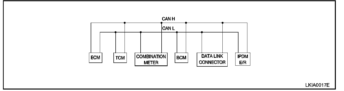 CAN (Controller Area Network) is a serial communication line for real time application. It is an on-vehicle multiplex communication line with high data communication speed and excellent error detection ability. Many electronic control units are equipped onto a vehicle, and each control unit shares information and links with other control units during operation (not independent). In CAN communication, control units are connected with 2 communication lines (CAN H line, CAN L line) allowing a high rate of information transmission with less wiring. Each control unit transmits/receives data but selectively reads required data only.