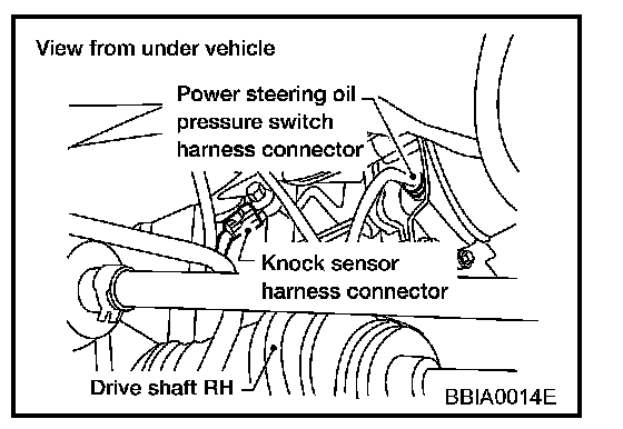 The knock sensor is attached to the cylinder block. It senses engine knocking using a piezoelectric element. A knocking vibration from the cylinder block is sensed as vibrational pressure. This pressure is converted into a voltage signal and sent to the ECM.