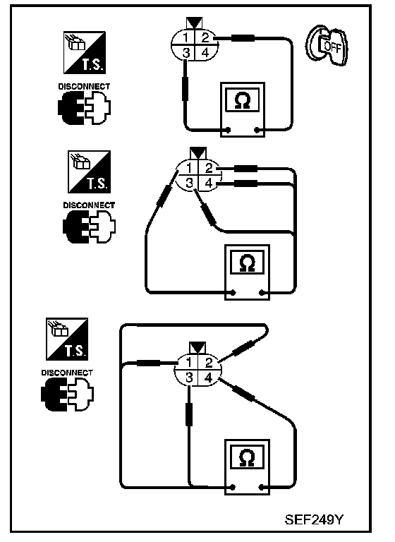 1. Check resistance between HO2S1 terminals as shown.
