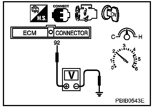 2. Set voltmeter probes between ECM terminal 92 [HO2S1 (B1) signal] and engine ground.