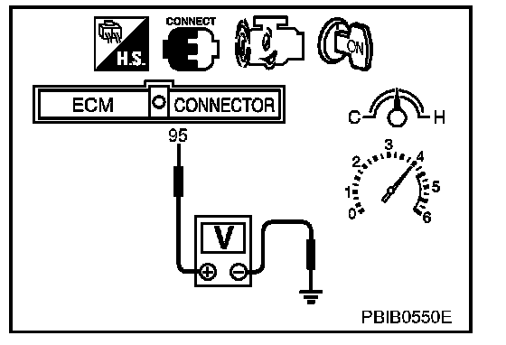 3. Set voltmeter probes between ECM terminal 95 [HO2S2 (B1) signal] and engine ground.