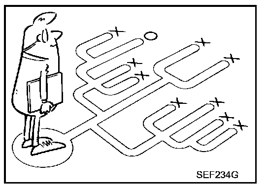 A visual check only may not find the cause of the problems. A road test with CONSULT-II (or GST) or a circuit tester connected should be performed. Follow the "Work Flow".
