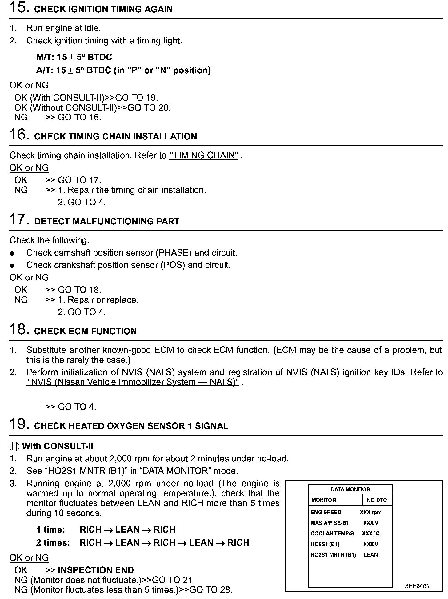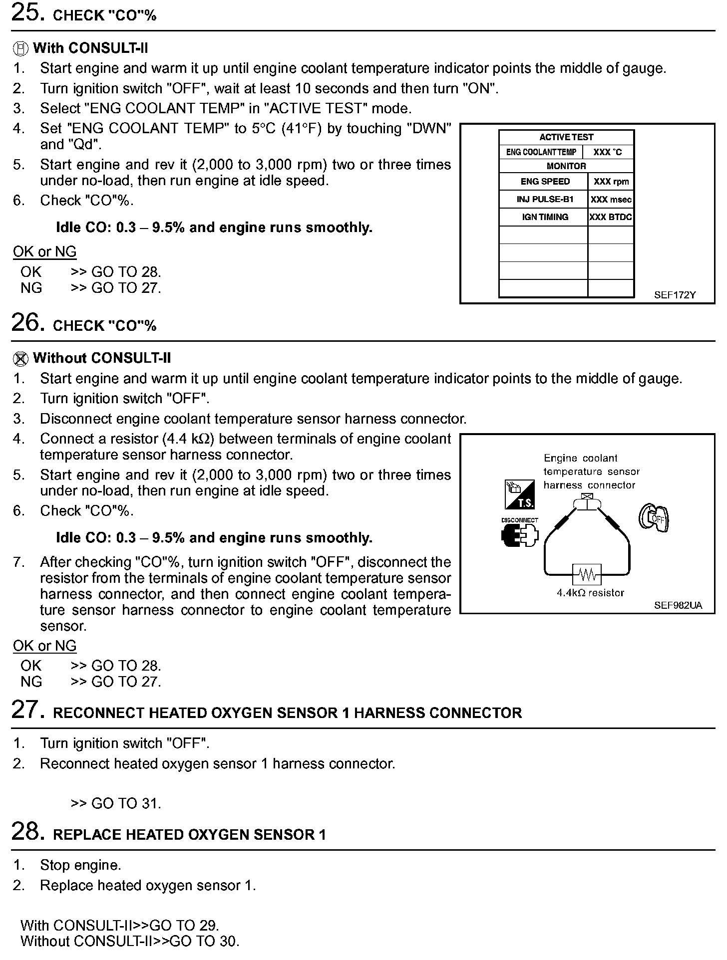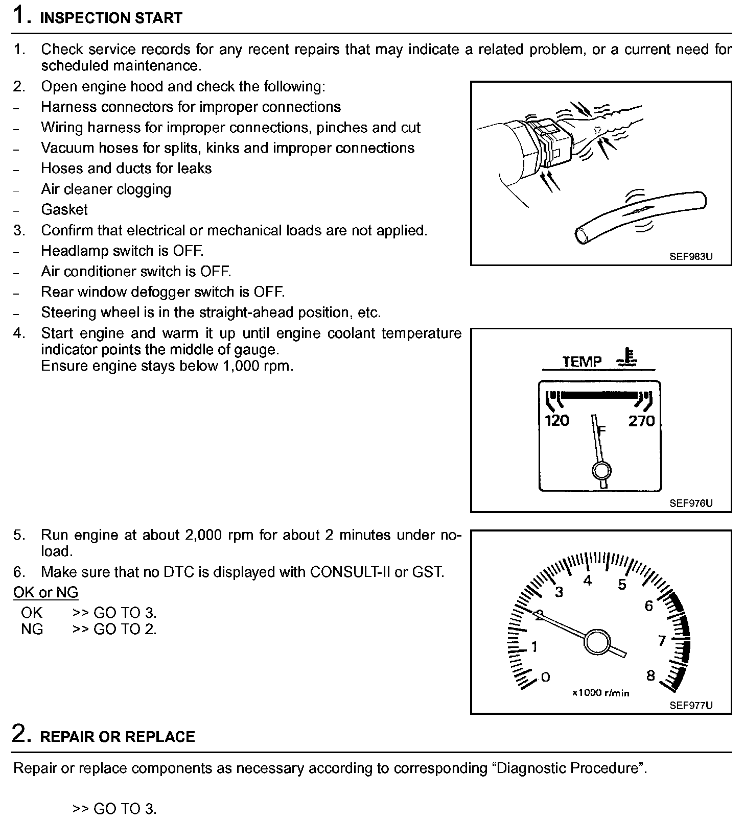 2. On air conditioner equipped models, checks should be carried out while the air conditioner is "OFF".
