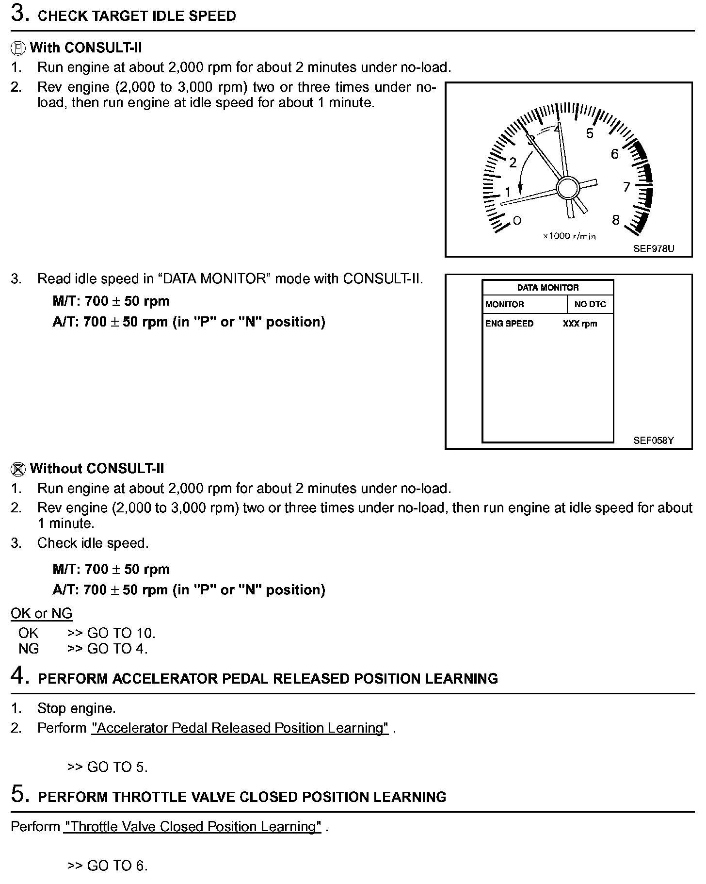 3. On automatic transmission equipped models, when checking idle rpm, ignition timing and mixture ratio, checks should be carried out while shift lever is in "N" position.
