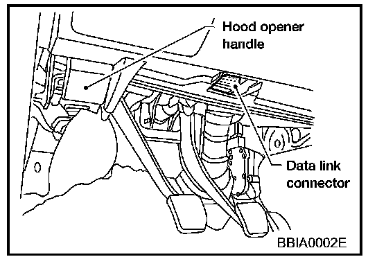 2. Connect "GST" to data link connector, which is located under LH dash panel near the fuse box cover.