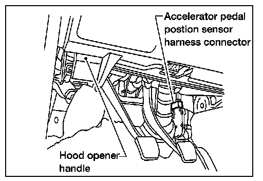 Accelerator Pedal Position Sensor Harness Connector / Hood Opener Handle: