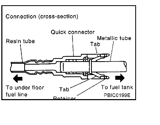 After connecting fuel tubes, make sure the connector is secure. Make sure the connector and resin tube do not contact adjacent parts.