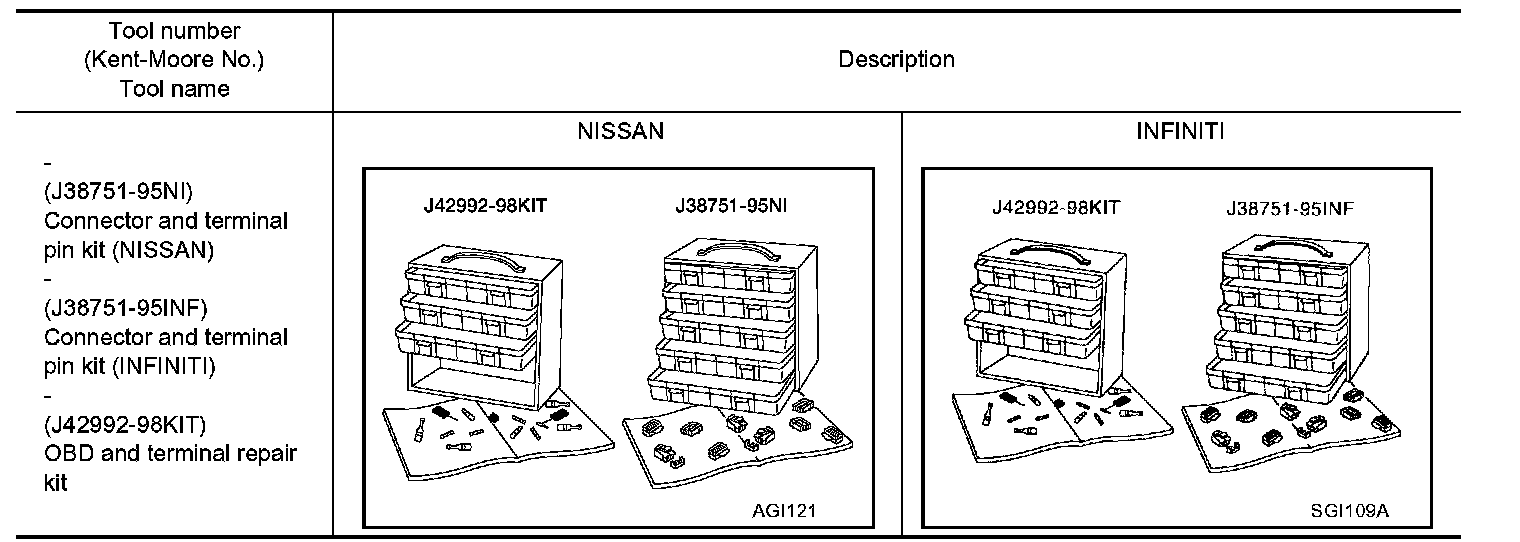 Use the connector and terminal pin kit listed below when replacing connectors or terminals.