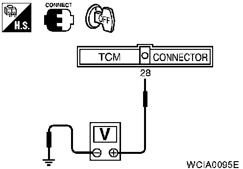 2. Check voltage between TCM terminal 28 (Y/R) and ground.