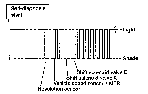 Does self-diagnosis show damage to vehicle speed sensor A/T (revolution sensor), shift solenoid valve A, B or vehicle speed sensor MTR after cruise test?