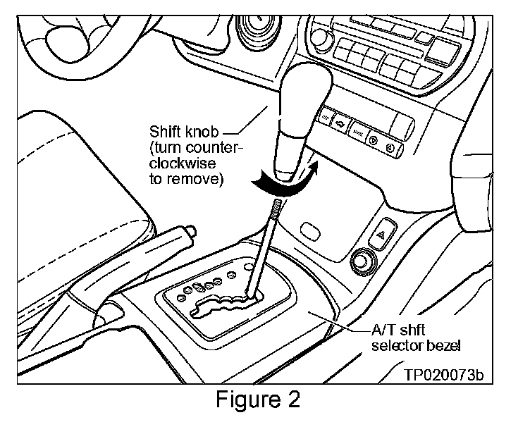 1. Remove the A/T shift knob by turning it counter-clockwise (see Figure 2).