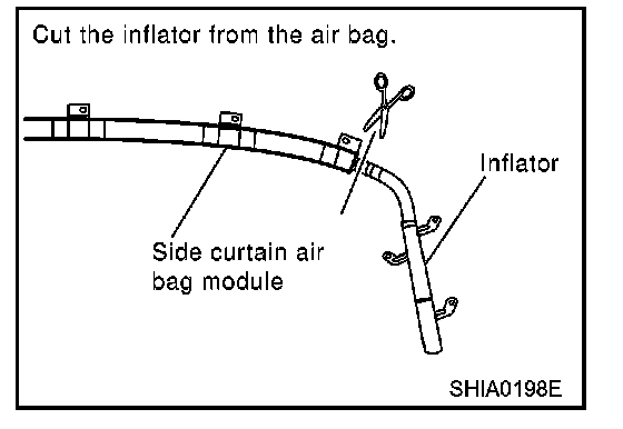 1. Cut the inflator from side curtain air bag module.