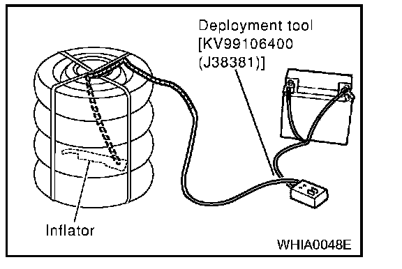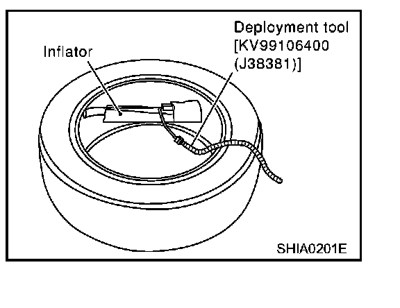 - When deploying the air bag module and seat belt pre-tensioner, always use the Special Service Tool; Deployment tool [KV99106400 (J38381)].