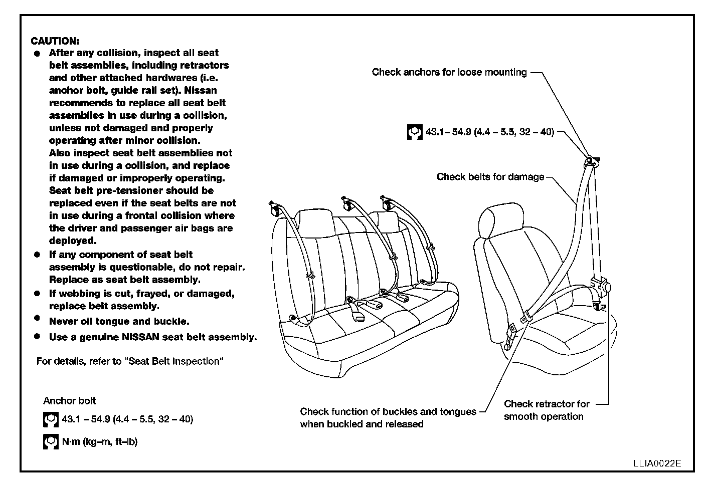 Checking Seat Belts, Buckles, Retractors, Anchors And Adjusters: