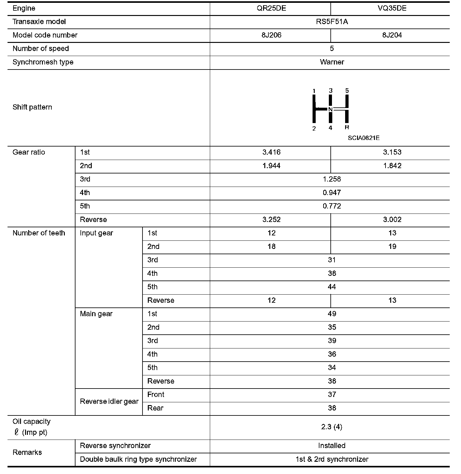 General SpecificationsTRANSAXLE