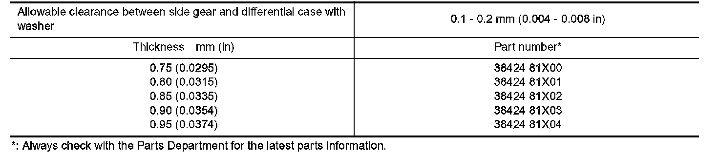 DIFFERENTIAL SIDE GEAR THRUST WASHER