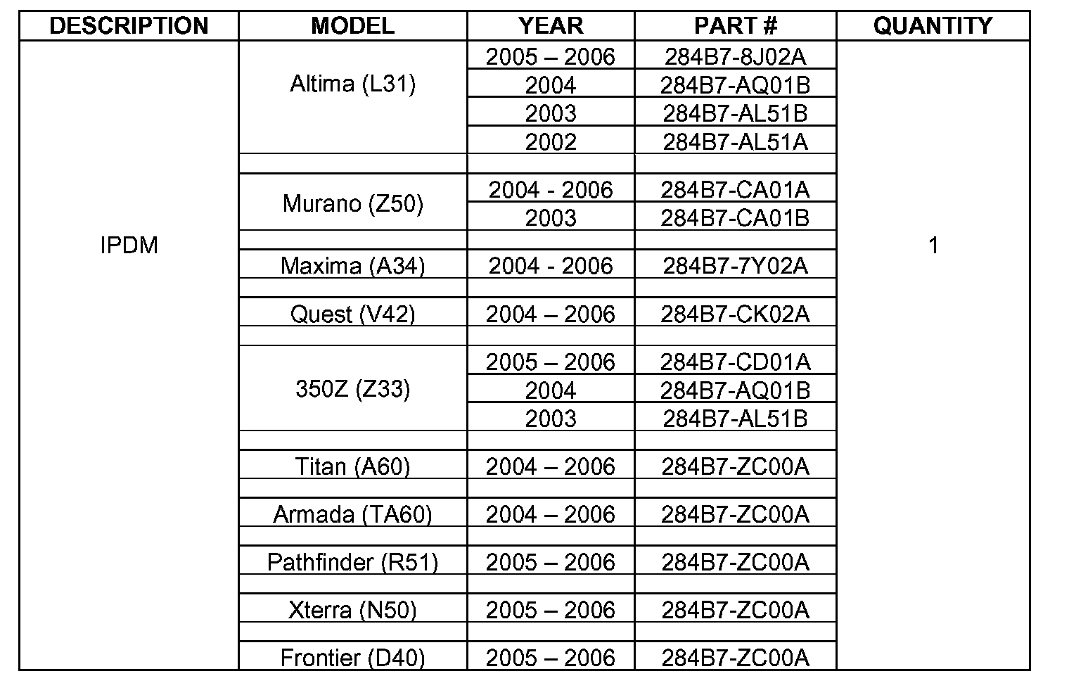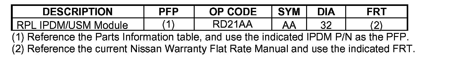 ^ For IPDM replacement information, go to the Service Manual, section PG, Removal and Installation of IPDM E/R.