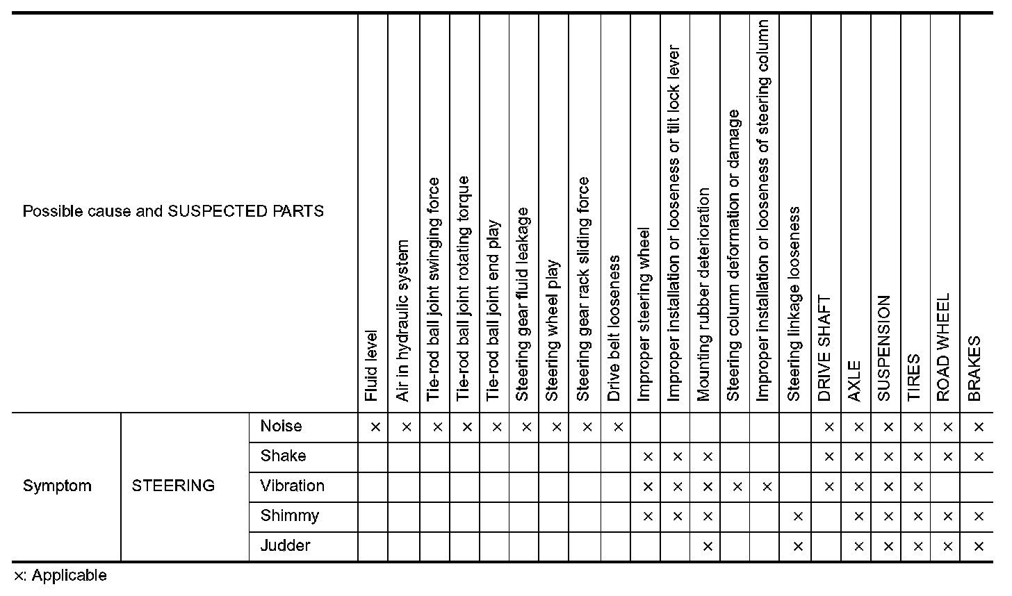 Use the chart to help you find the cause of the symptom. If necessary, repair or replace these parts.