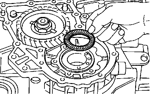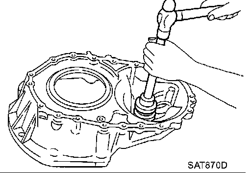 2. Install differential side bearing outer race on converter housing.