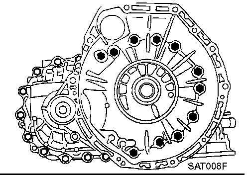 4. Install transmission case on converter housing. Tighten transmission case fixing bolts to the specified torque. Refer to "OVERHAUL".