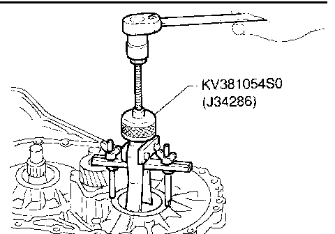 1. Install differential side bearing outer race without adjusting shim on transmission case.
