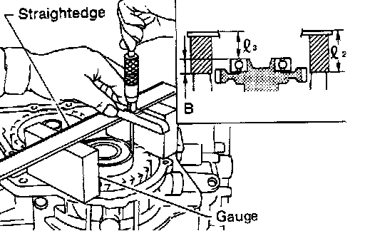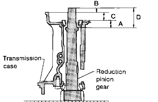 ^ Measure dimension "B" between the end of reduction pinion gear and the surface of transmission case.