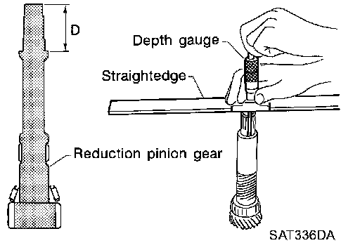 ^ Measure dimension "D" between the end of reduction pinion gear and the adjusting shim mating surface of reduction pinion gear.