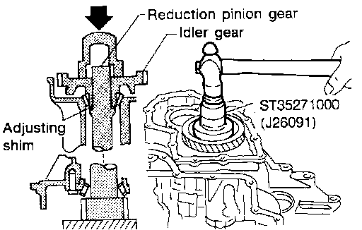 2. Select proper thickness of reduction pinion gear bearing adjusting shim using the following procedures.