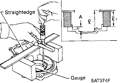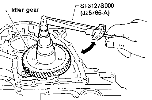 "A": Distance between the surface of idler gear bearing inner race and the adjusting shim mating surface of reduction pinion gear.