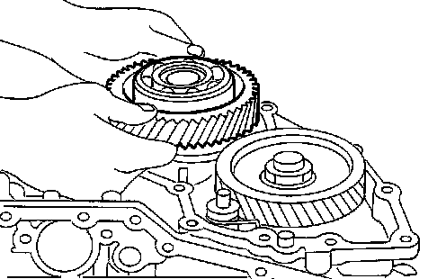 3. Install reduction gear and reduction gear bearing adjusting shim selected in step 2-e on transmission case.