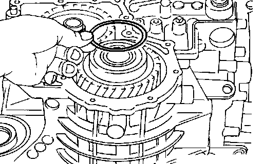 11. Remove differential side bearing outer race from transmission case.