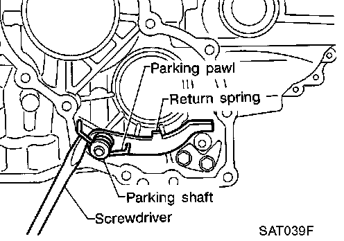 3. Install parking pawl on transmission case and fix it with parking shaft.