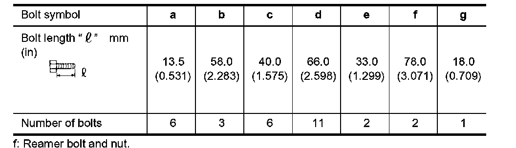 c. Set oil strainer, then tighten bolts a, c, d and nuts f to specified torque.