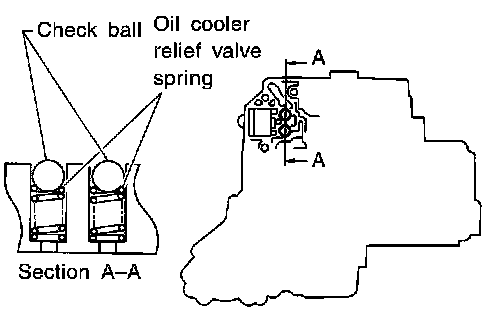 ^ Be careful not to lose check balls and oil cooler relief valve springs.