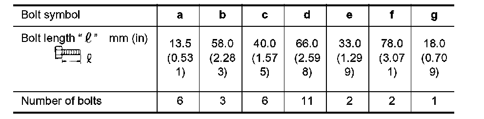 4. Place upper body facedown, and remove bolts b, c and nut f.