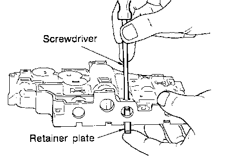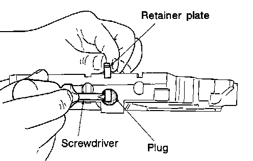 b. Remove retainer plates while holding spring, plugs or sleeves.